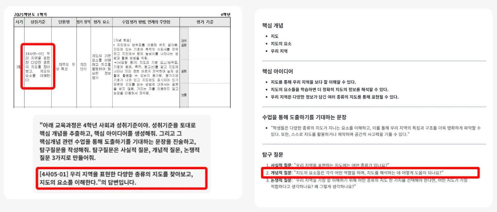 물론 AI가 생성한 결과물을 그대로 사용하기보다는 선생님의 교육 철학과 학급 상황에 맞게 수정하고 보완하는 과정은 반드시 필요합니다. 하지만 AI 보조교사를 적절히 활용한다면 깊이 있는 학습을 위한 탐구 질문 설계와 글쓰기 지도에 대한 부담을 크게 줄이고, 선생님은 학생들의 학습 과정과 결과에 더욱 집중할 수 있을 것입니다.