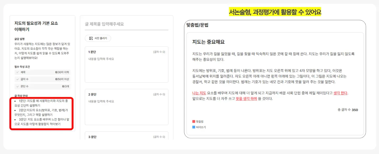 • 서·논술형 및 과정 중심 평가 활용: 학생들의 글쓰기 결과는 서·논술형 평가의 보조 자료나 과정 중심 평가의 근거 자료로 유용하게 활용될 수 있었습니다. 특히, 학습 과정에서 학생이 어떻게 성장하고 변화했는지 보여주는 좋은 자료가 됩니다.